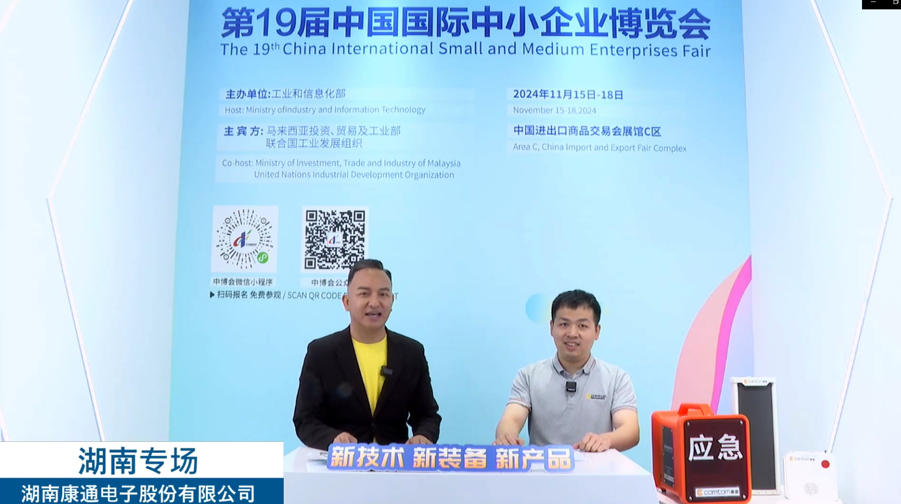 同時,康通電子方案營銷部負責人朱涌做客中博會“新技術、新裝備、新產品”發布活動直播間,與大家分享康通電子在音視頻技術和應急安全方面的新產品、新設備,讓更多人了解應急安全設備就在我們身邊。當出現緊急災害時候,我們通過這些應急安全設備快速進行求助,及時得到救援。